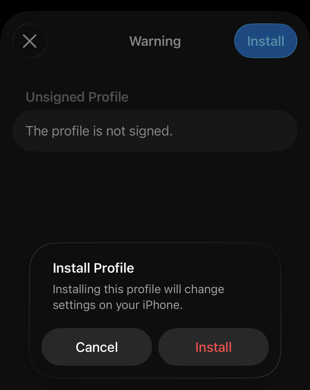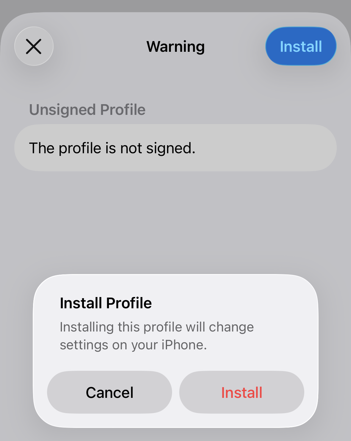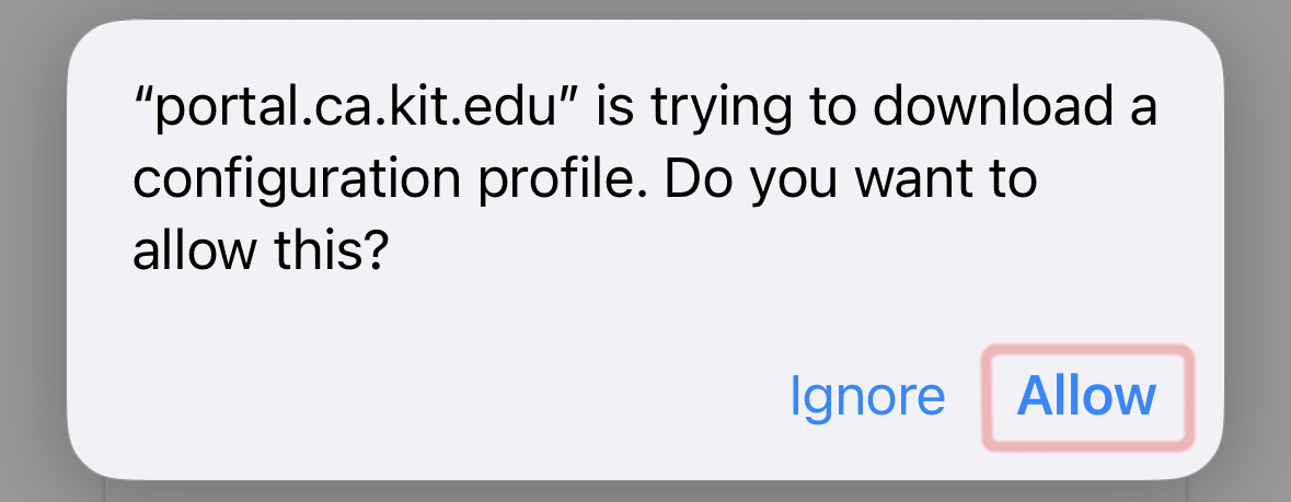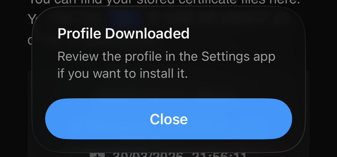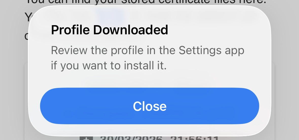 Allow the configuration profile to be downloaded and close the dialog: