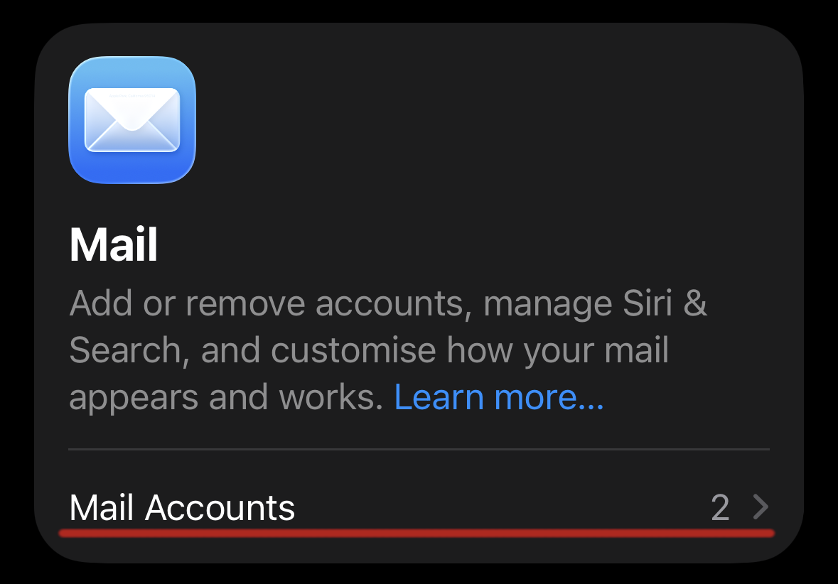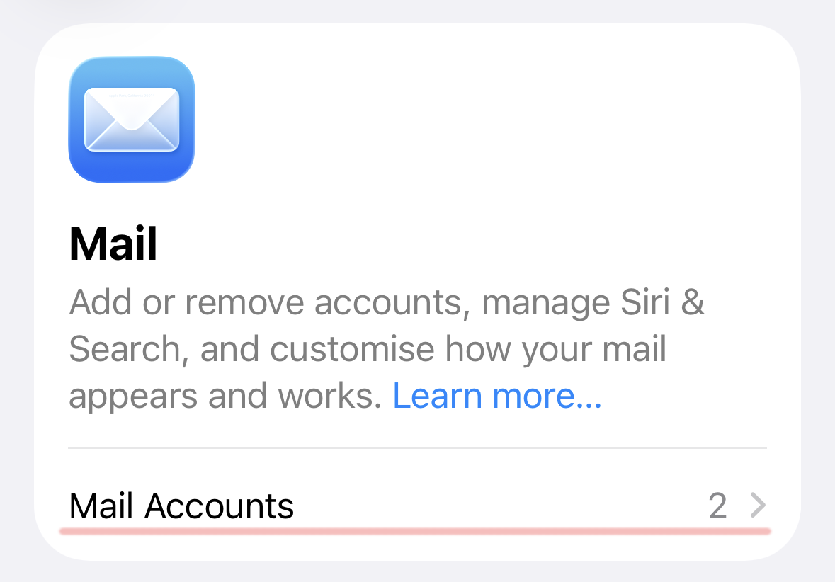 In the Settings app, go to Apps → Mail and open Mail Accounts: