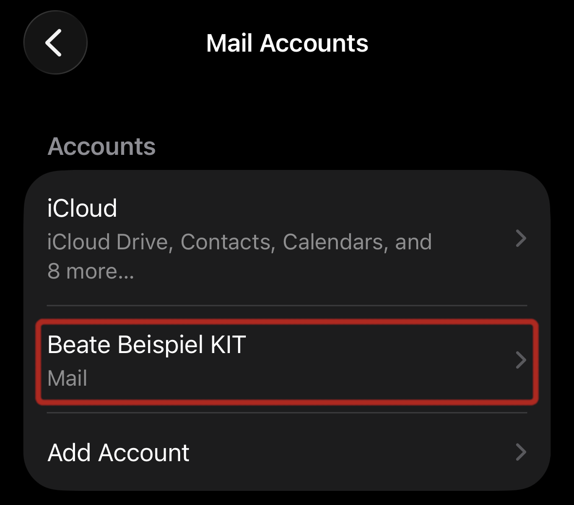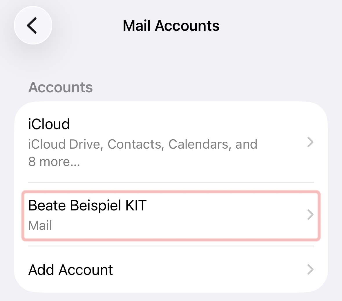Beate.Beispiel@kit.edu. In this case, we recommend to change the email address in the account settings of Apple Mail