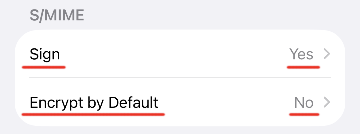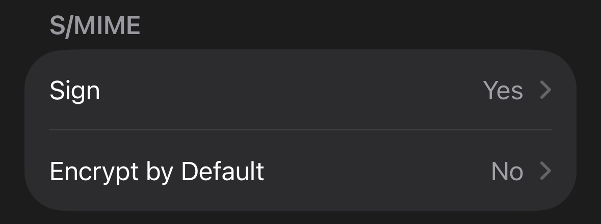 At the very bottom are the S/MIME settings: