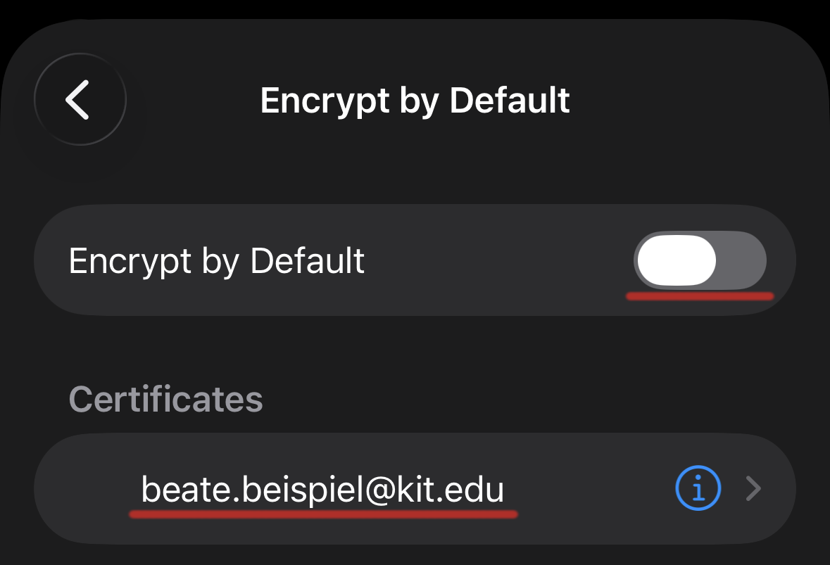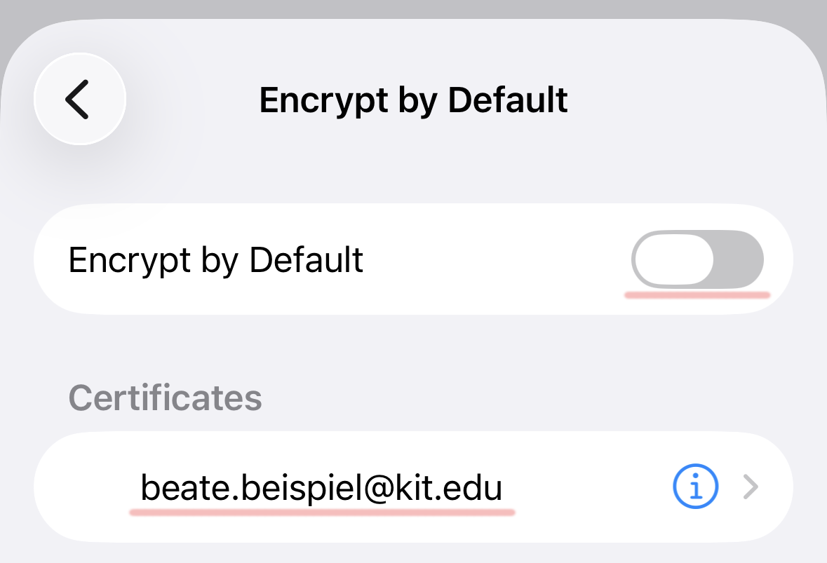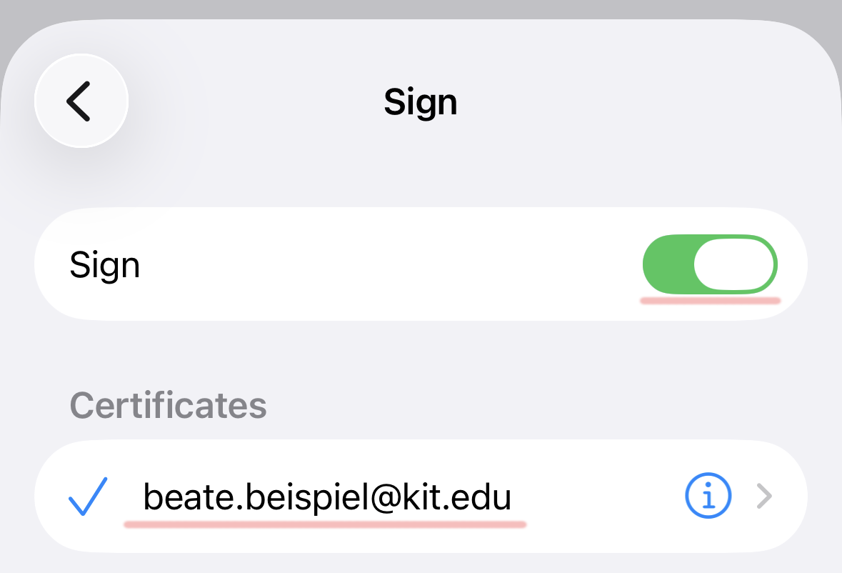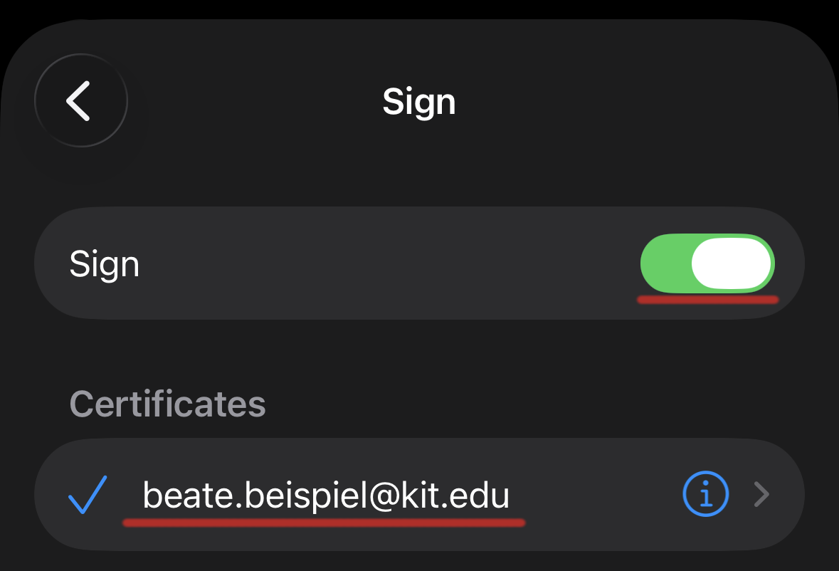 in the account settings does not match the one in the certificate. Example: beate.beispiel@kit.edu is not the same as