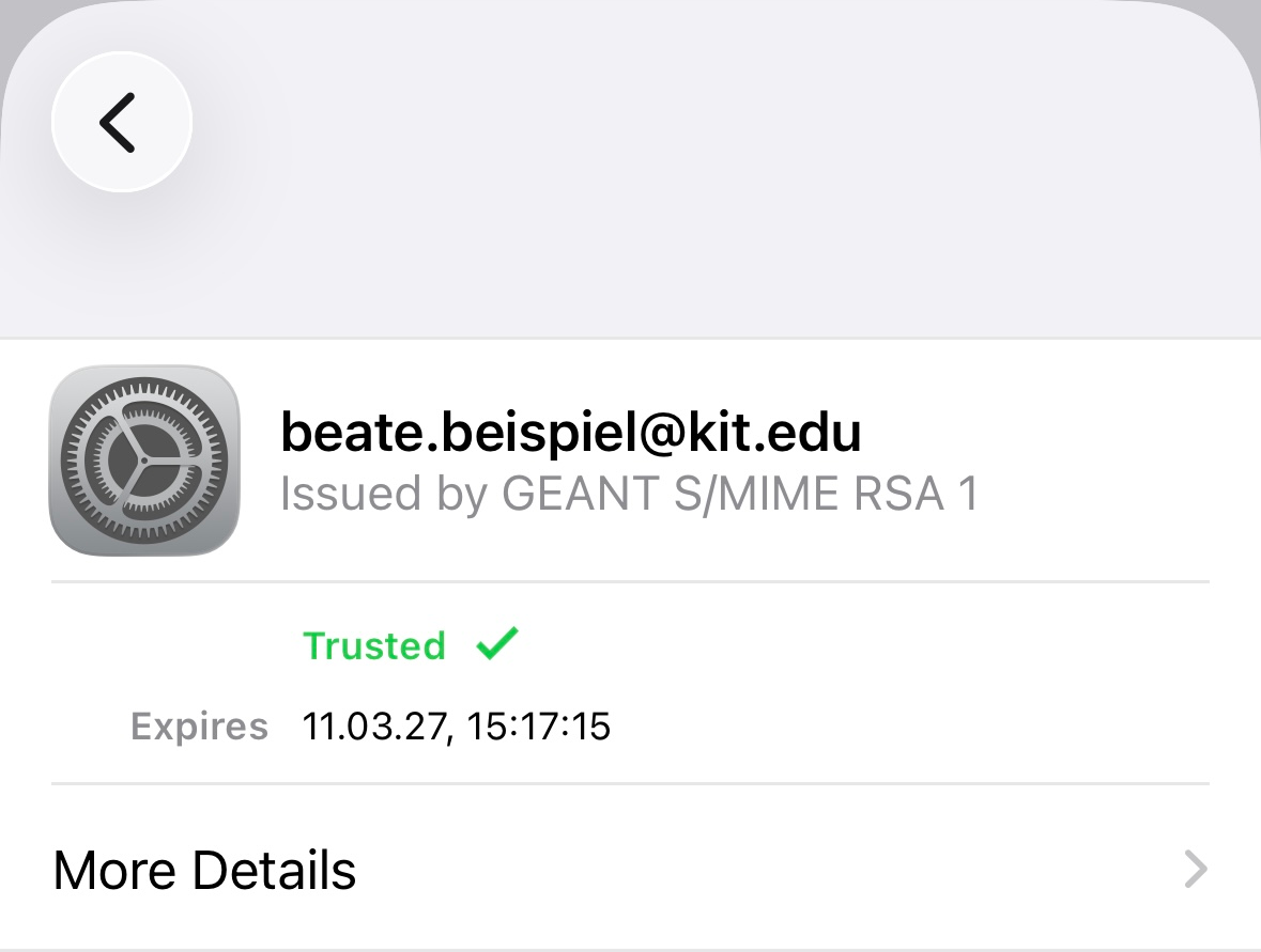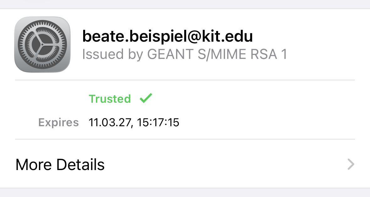 If you’re still uncertain, take a look at More Details. Here you will find all certificate attributes, such as the serial number, validity period, common name, and email addresses. Make sure the correct certificate has been selected ( to the left of the entry).